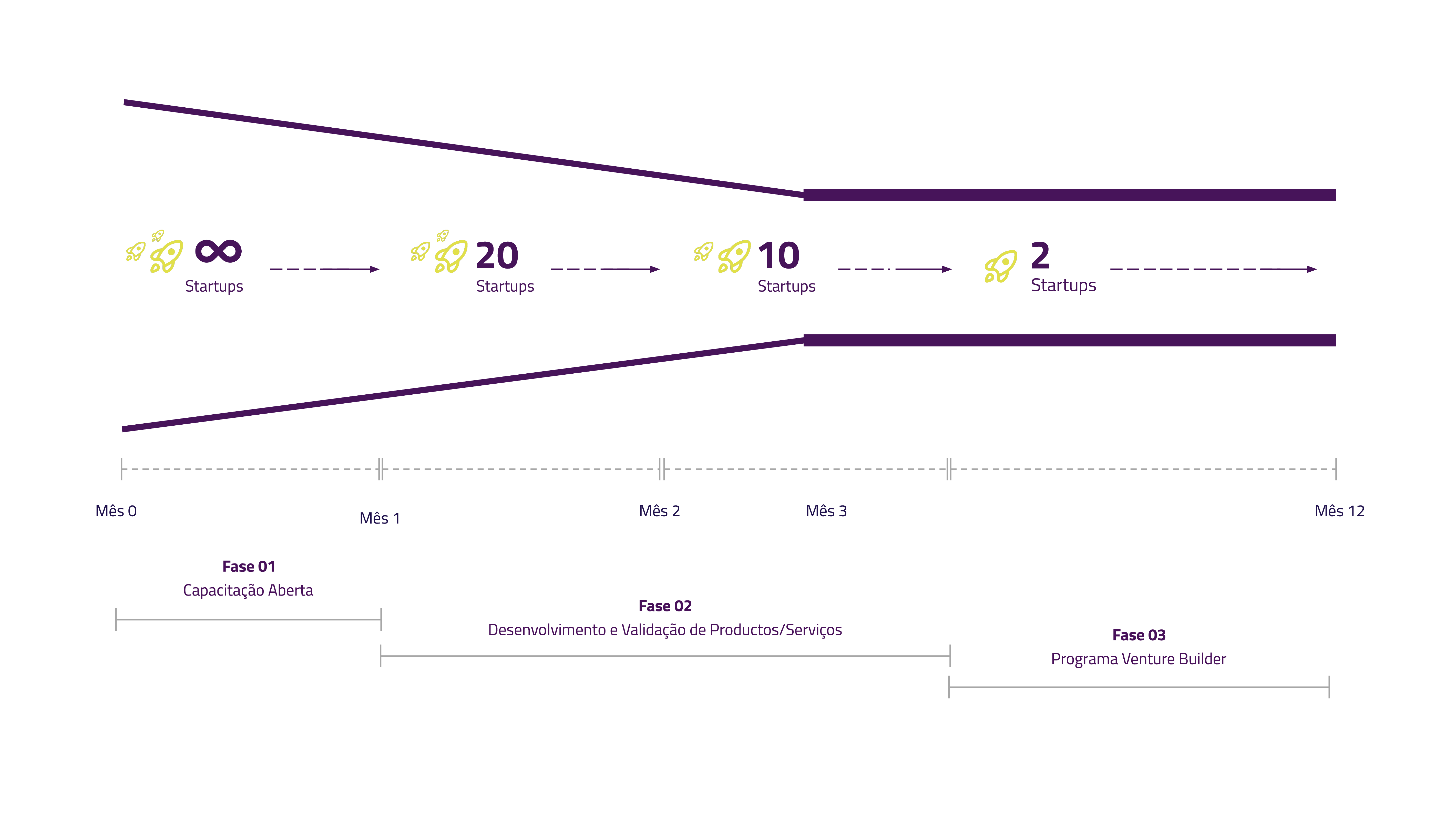 Após a fase inicial, 20 startups serão selecionadas para um processo intensivo de desenvolvimento de produtos. Durante o primeiro mês, as startups trabalharão no aprimoramento das suas soluções com o apoio de especialistas.